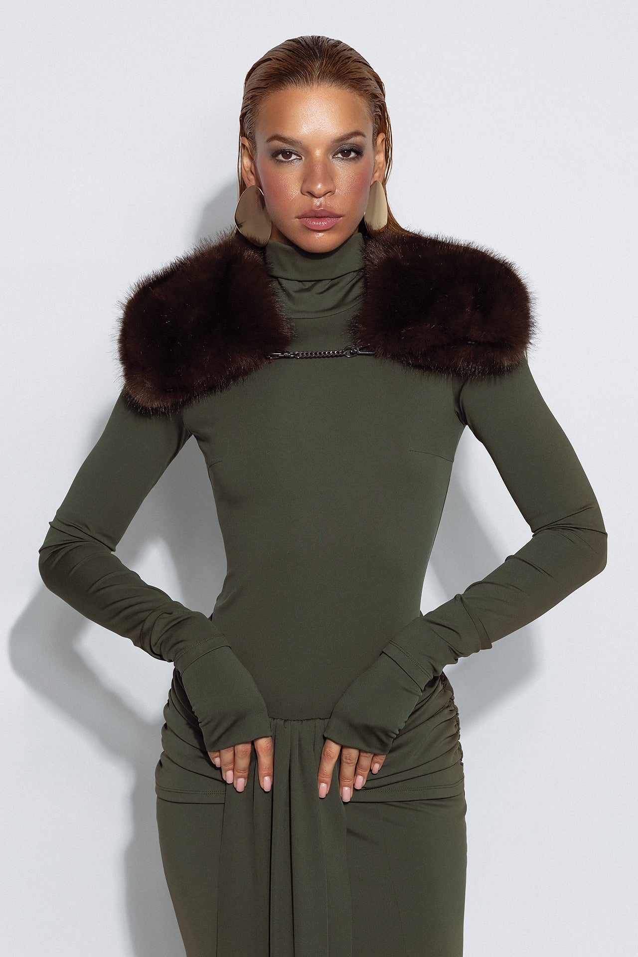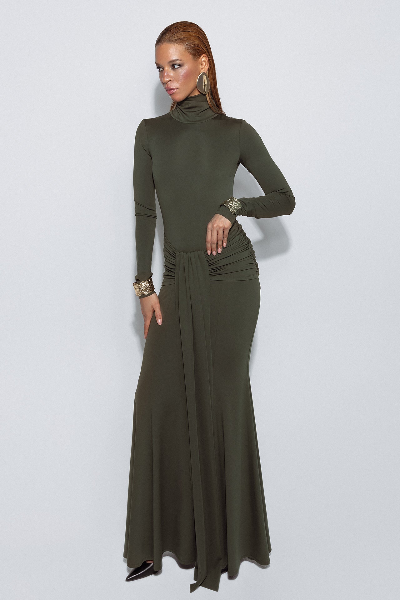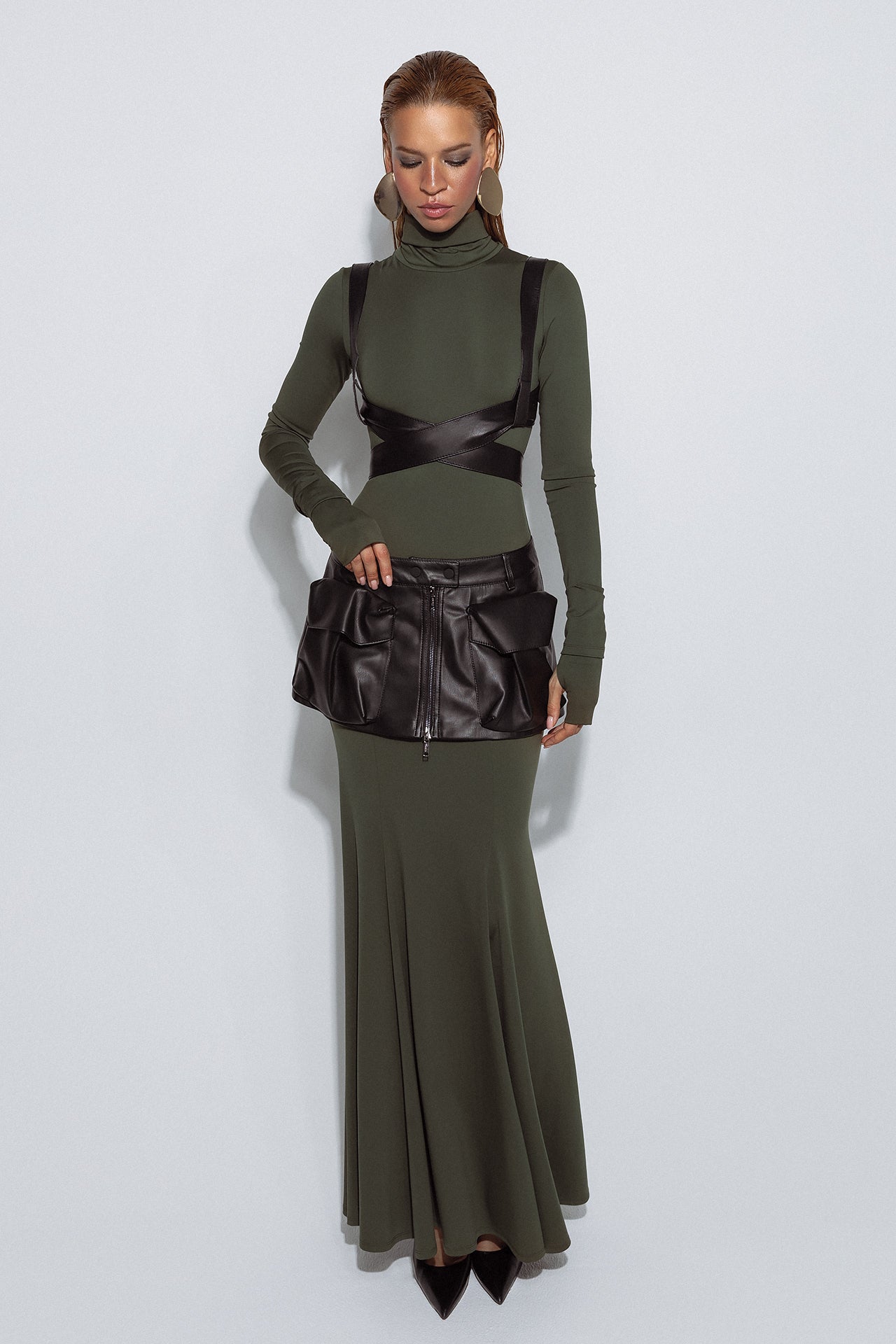 The set includes cuffs in the dress color with a thumb slit as a modern accent and an additional element in the form of a removable GAYA belt.