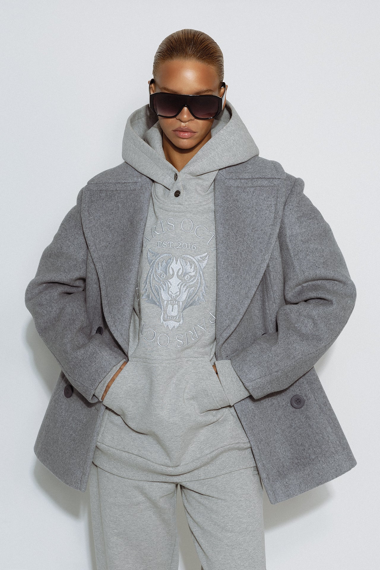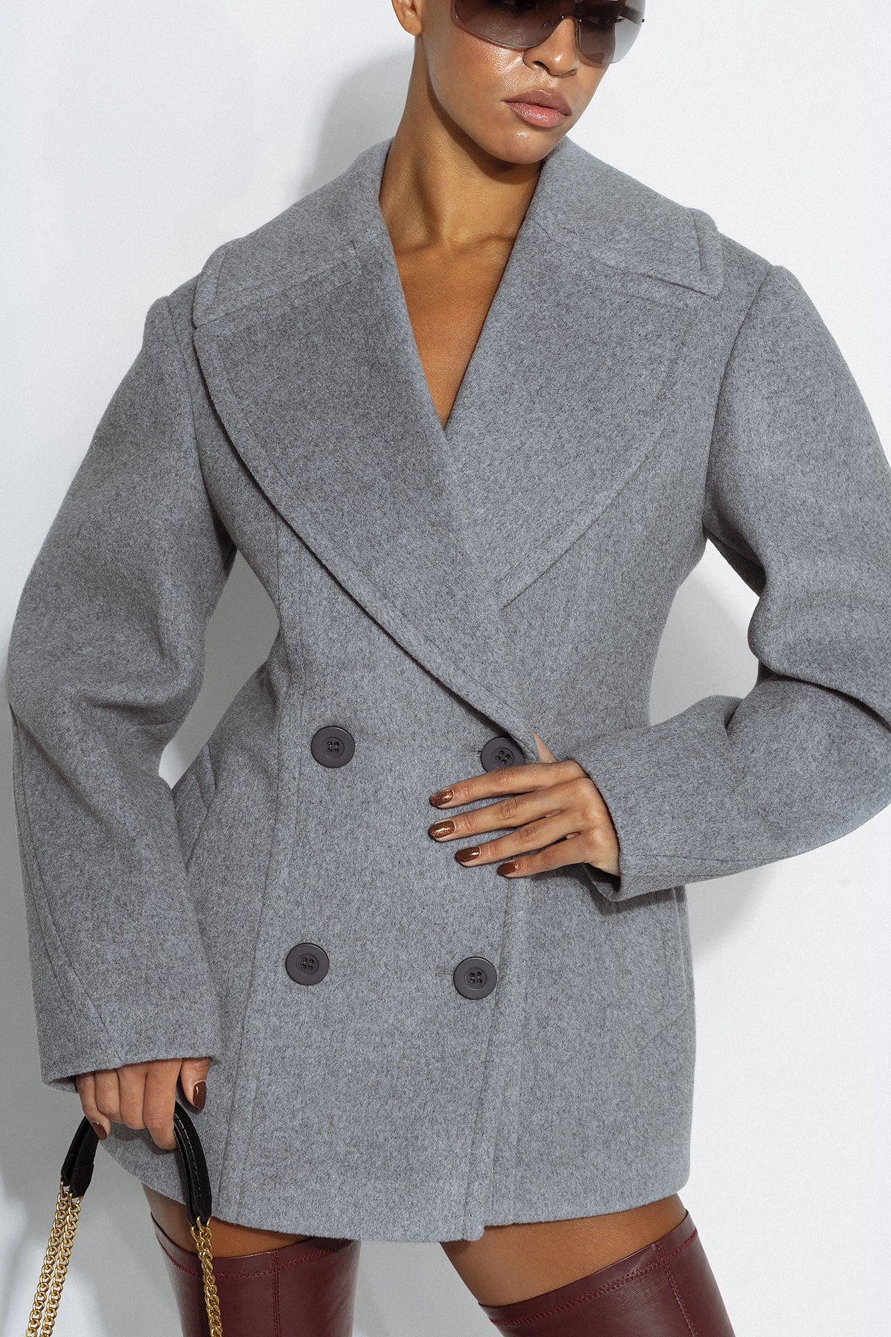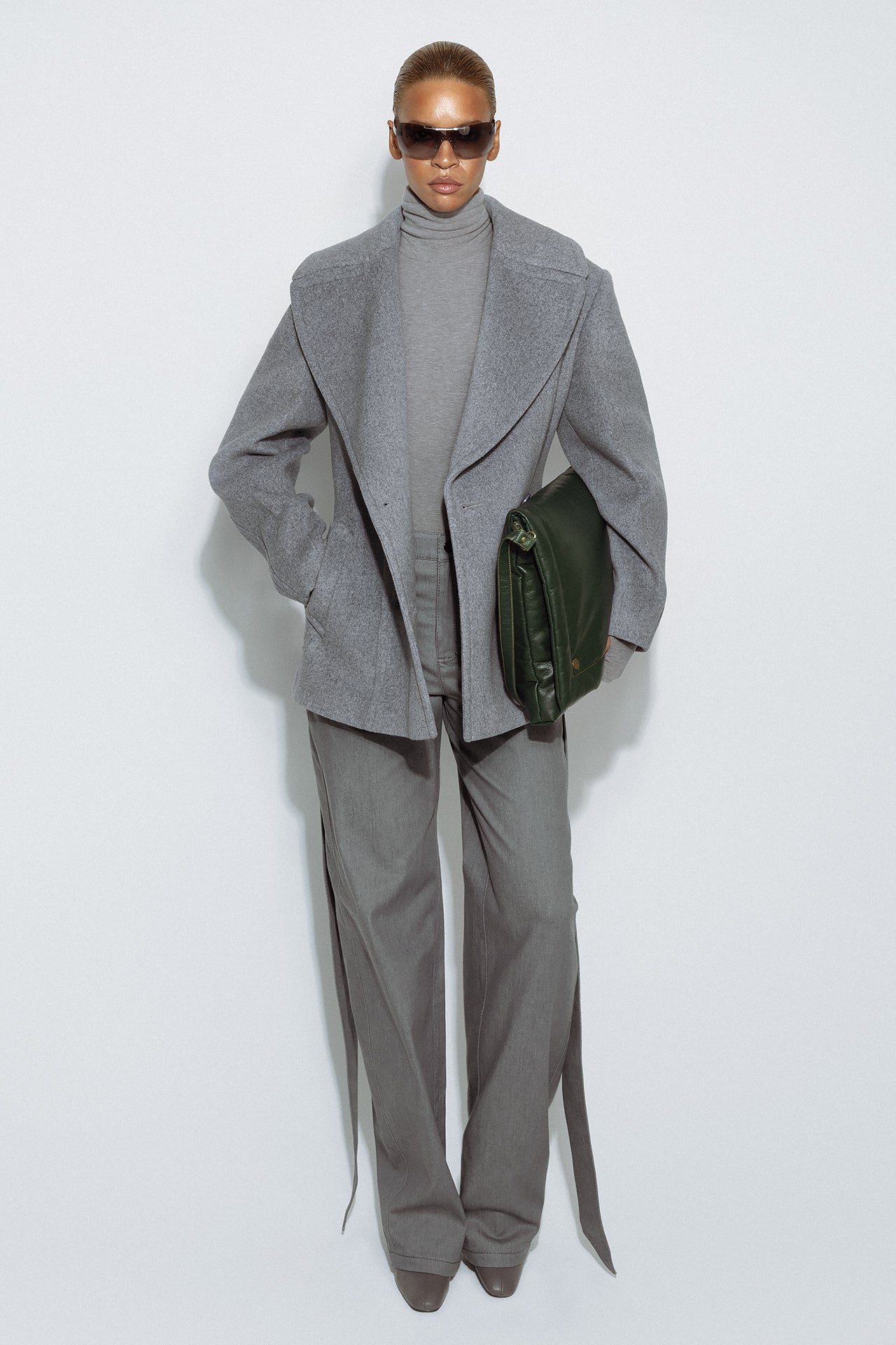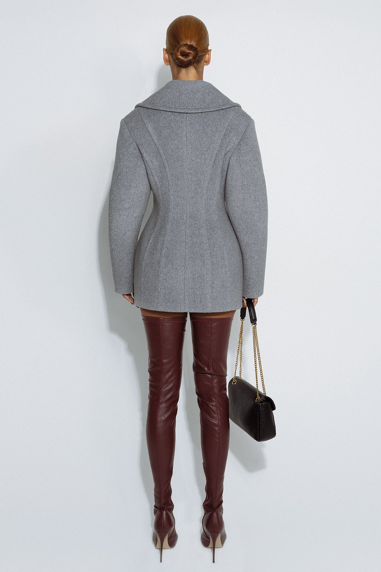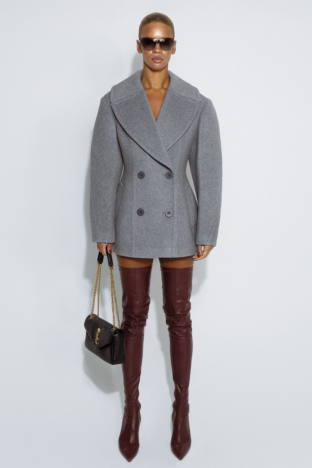 Detailing: Couture-inspired seaming creates a voluminous cocoon shape and emphasizes the waistline
