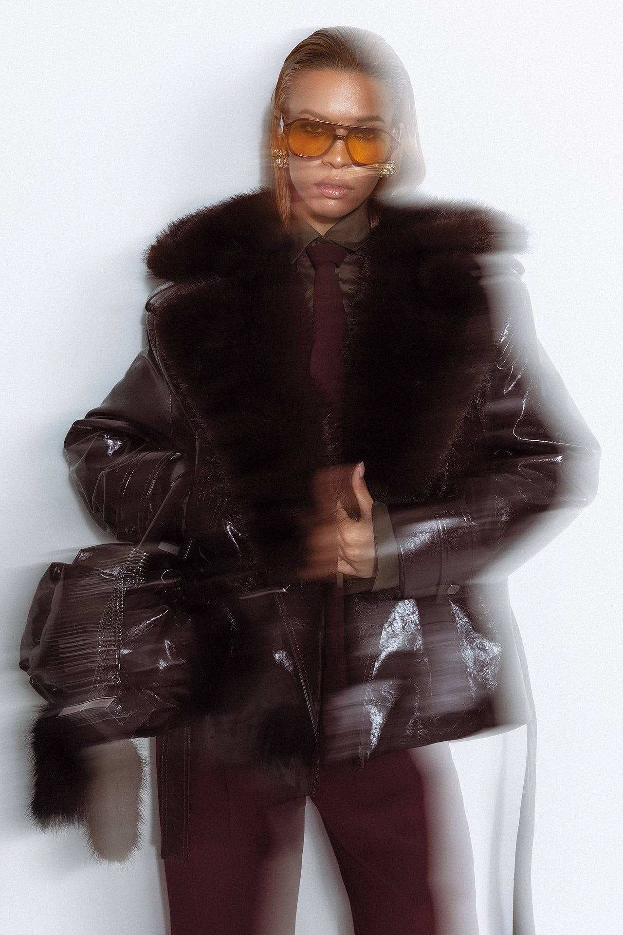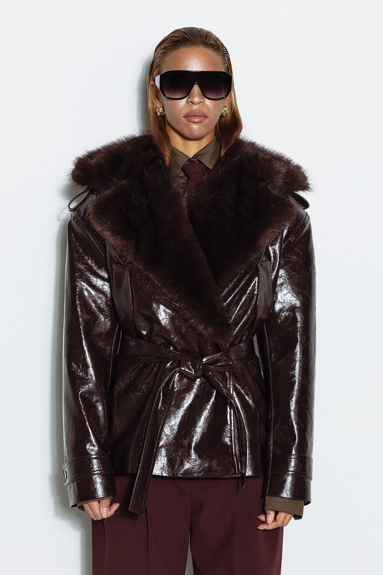 A contemporary interpretation of a classic cut with a noble, vintage-inspired finish. Crafted from luxury vegan leather with a subtle sheen and a soft, vintage texture. Warm, lightweight, and versatile—it is the perfect choice for three seasons (autumn, winter, and spring).