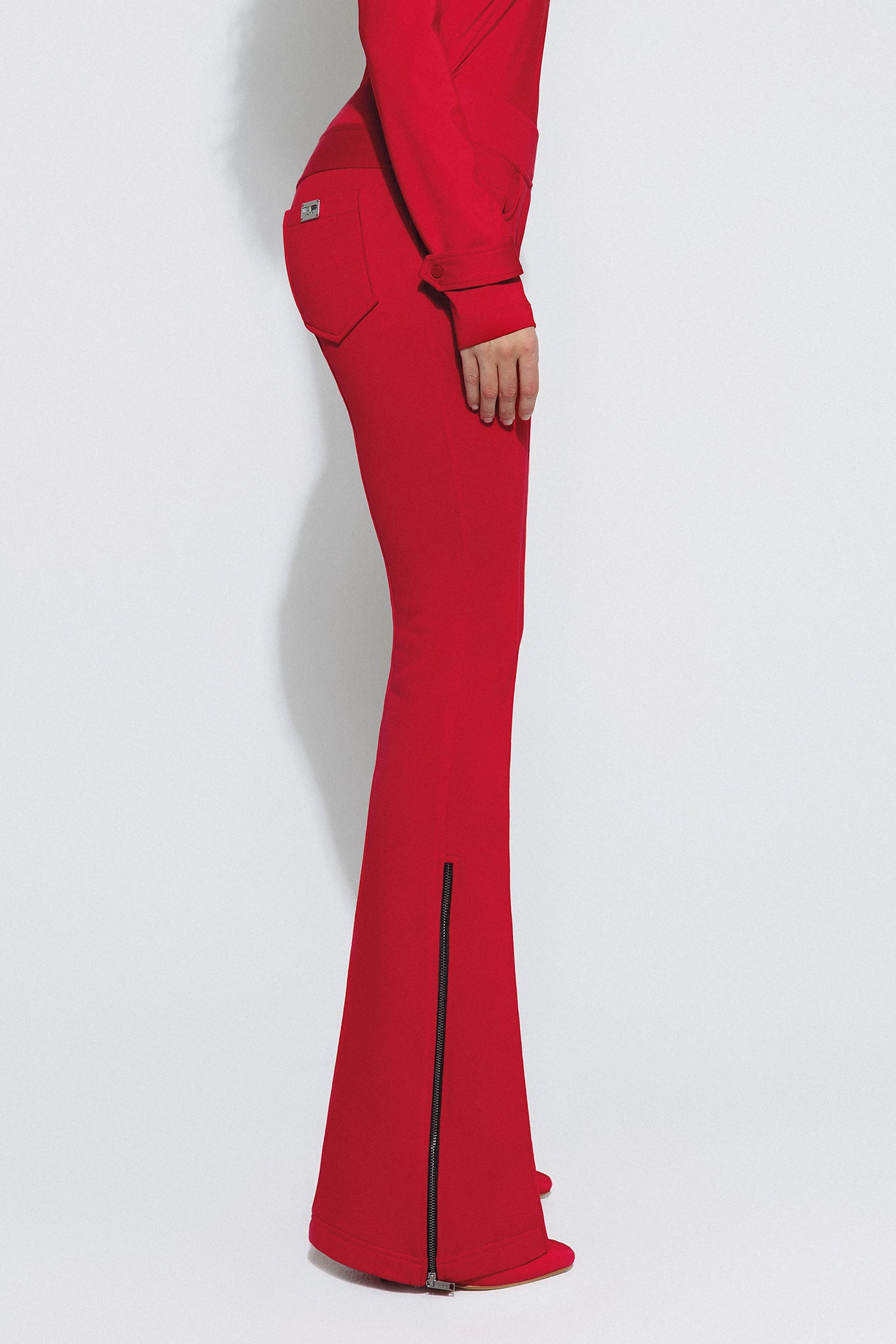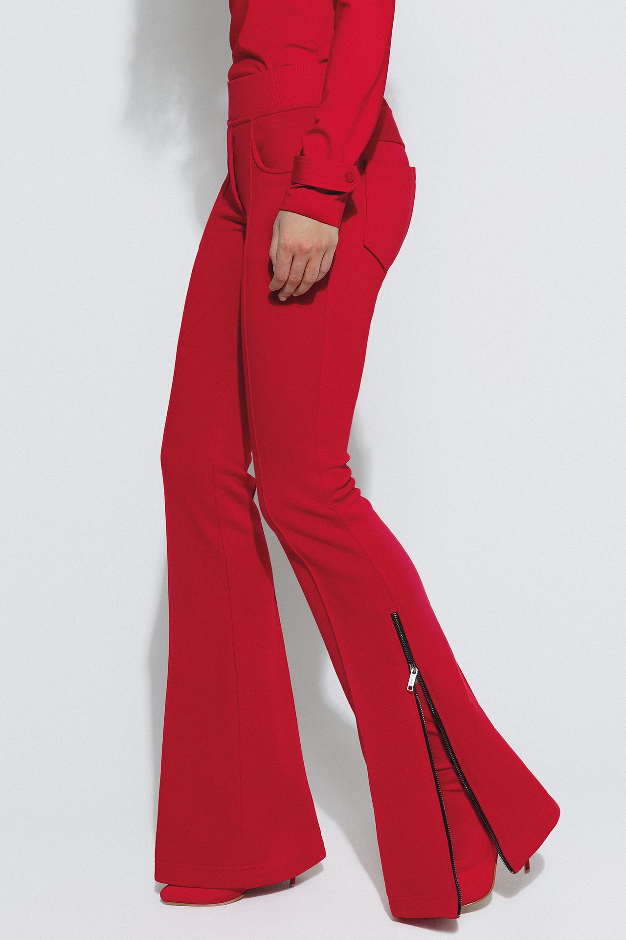 Side seams: Metal zippers from the knee to the hem