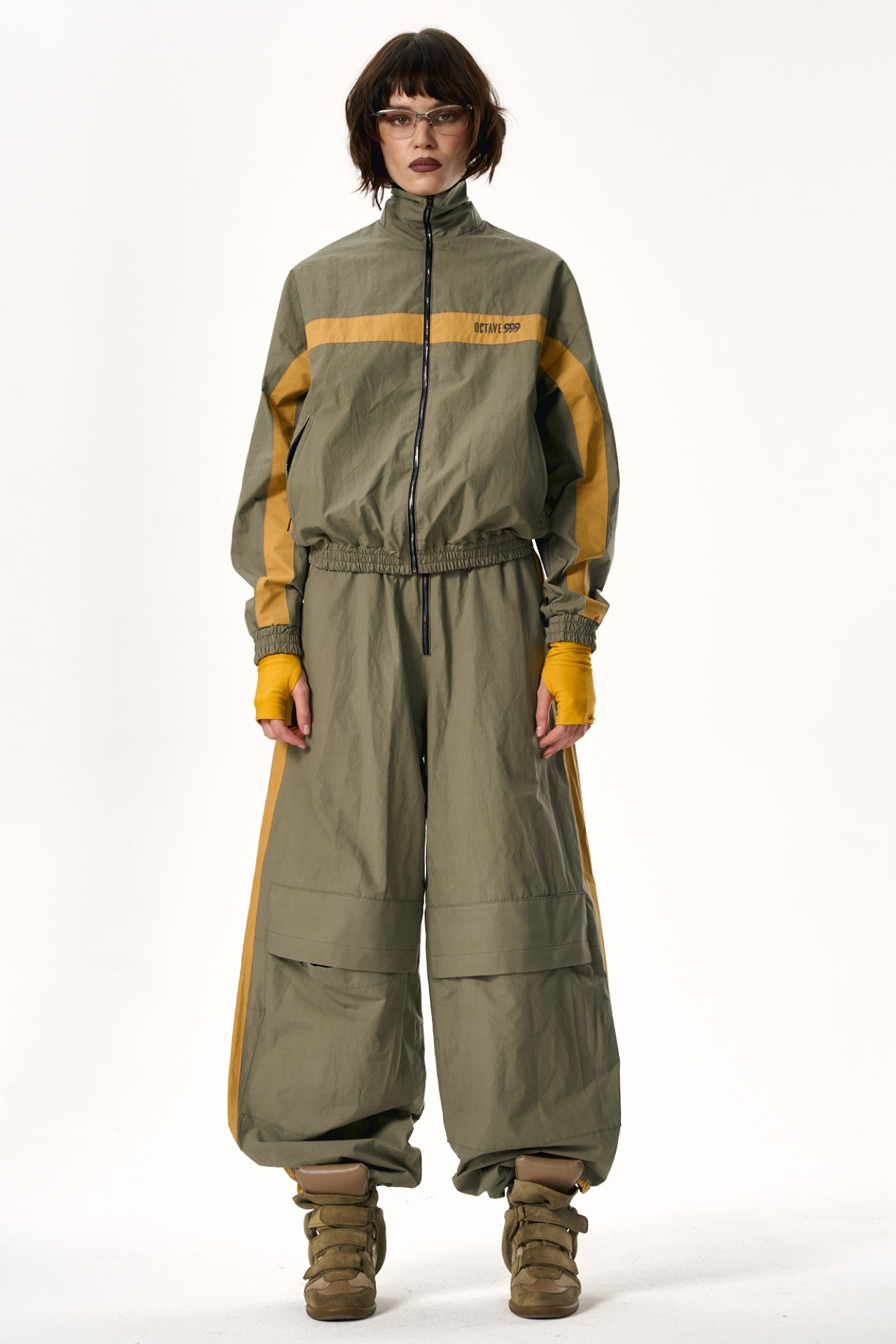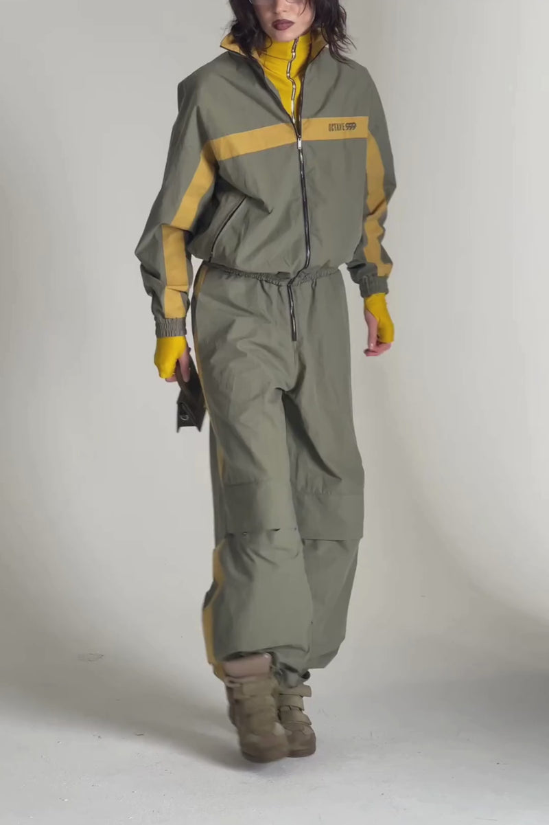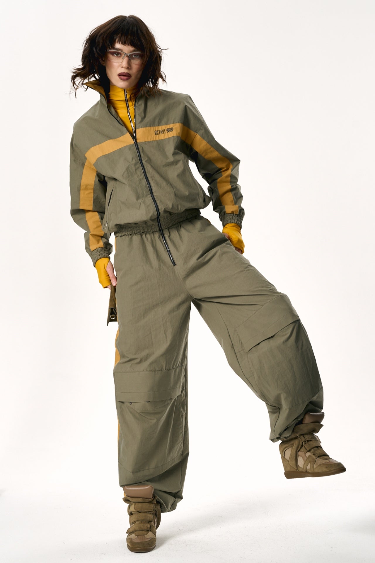 Relaxed-fit trousers with a soft waistband and adjustable drawstring hems. They work well as a set with the zip-up jacket or on their own with basic tops or more form-fitting pieces.