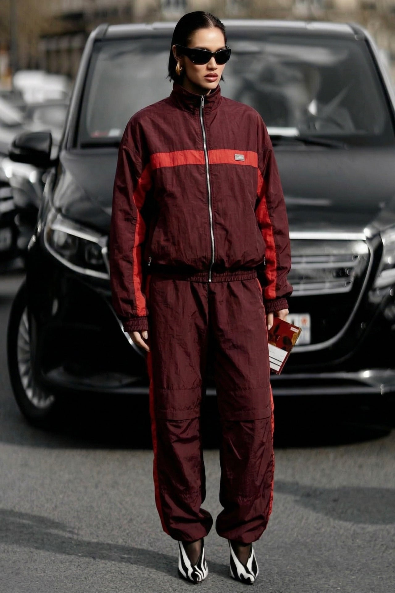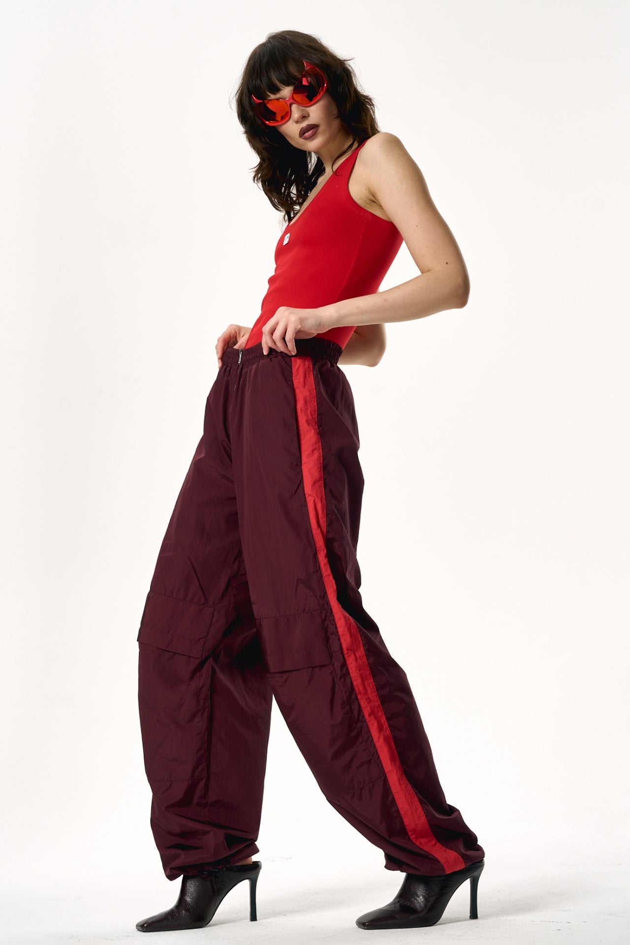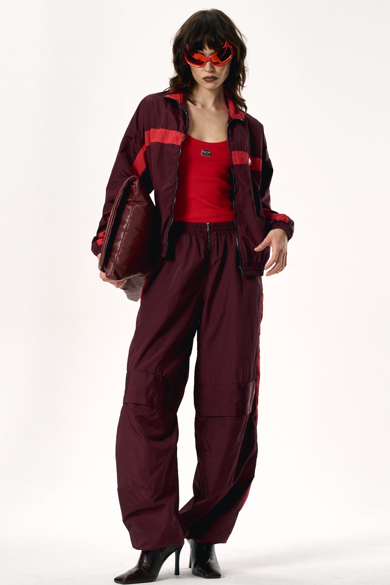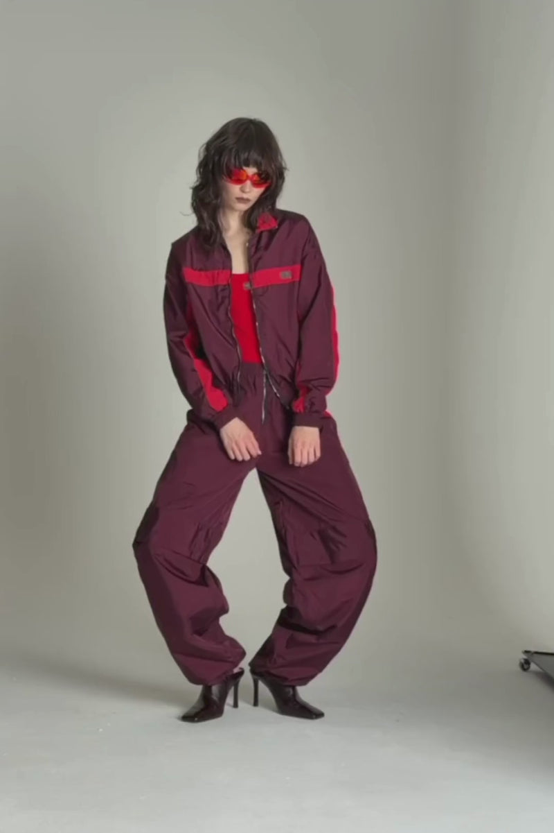 Relaxed-fit trousers with a soft waistband and adjustable drawstring hems. They work well as a set with the zip-up jacket or on their own with basic tops or more form-fitting pieces.