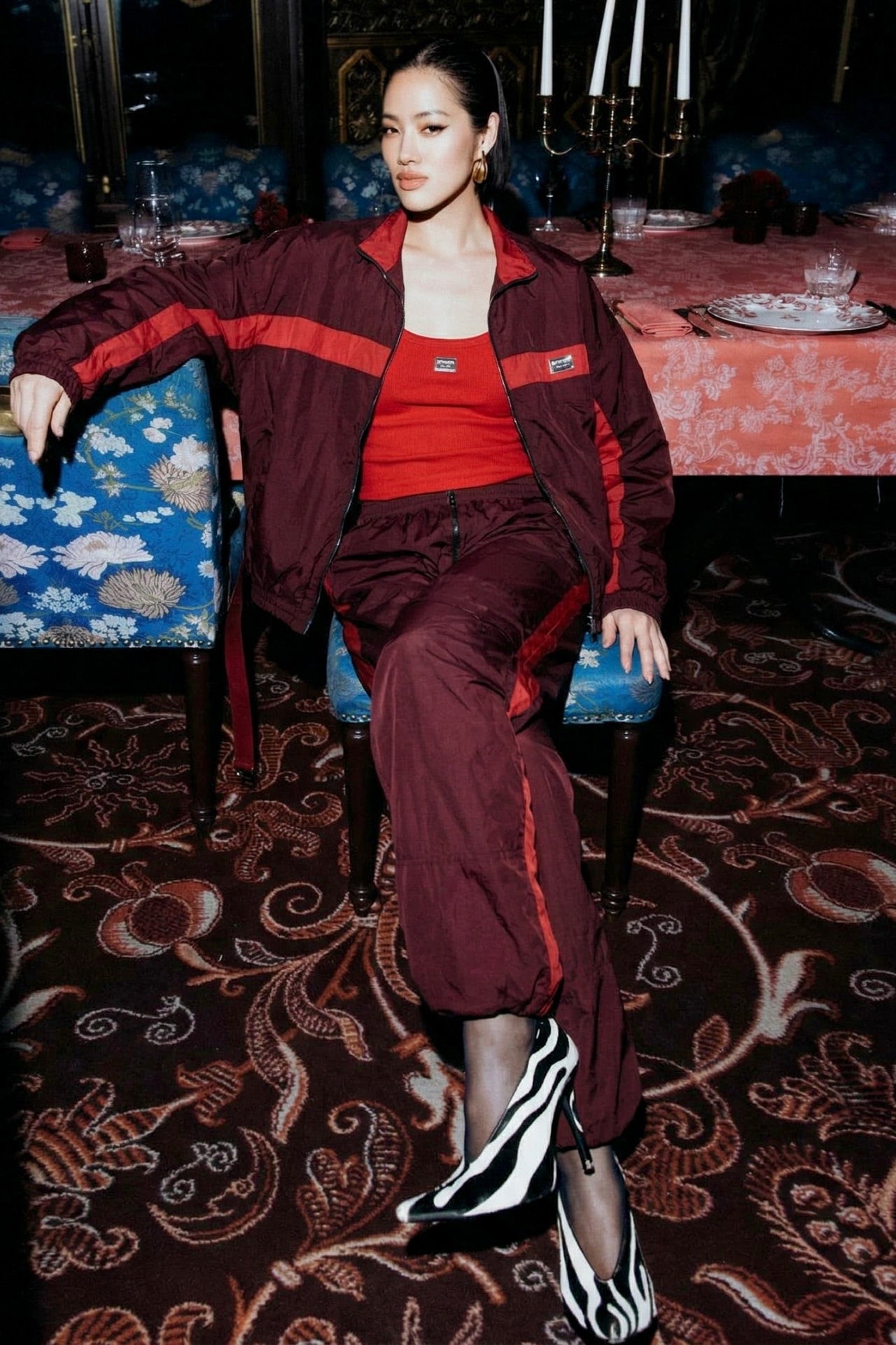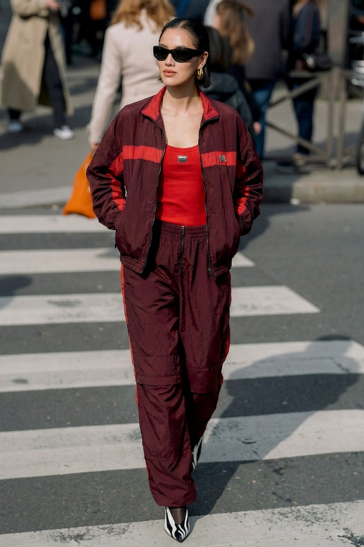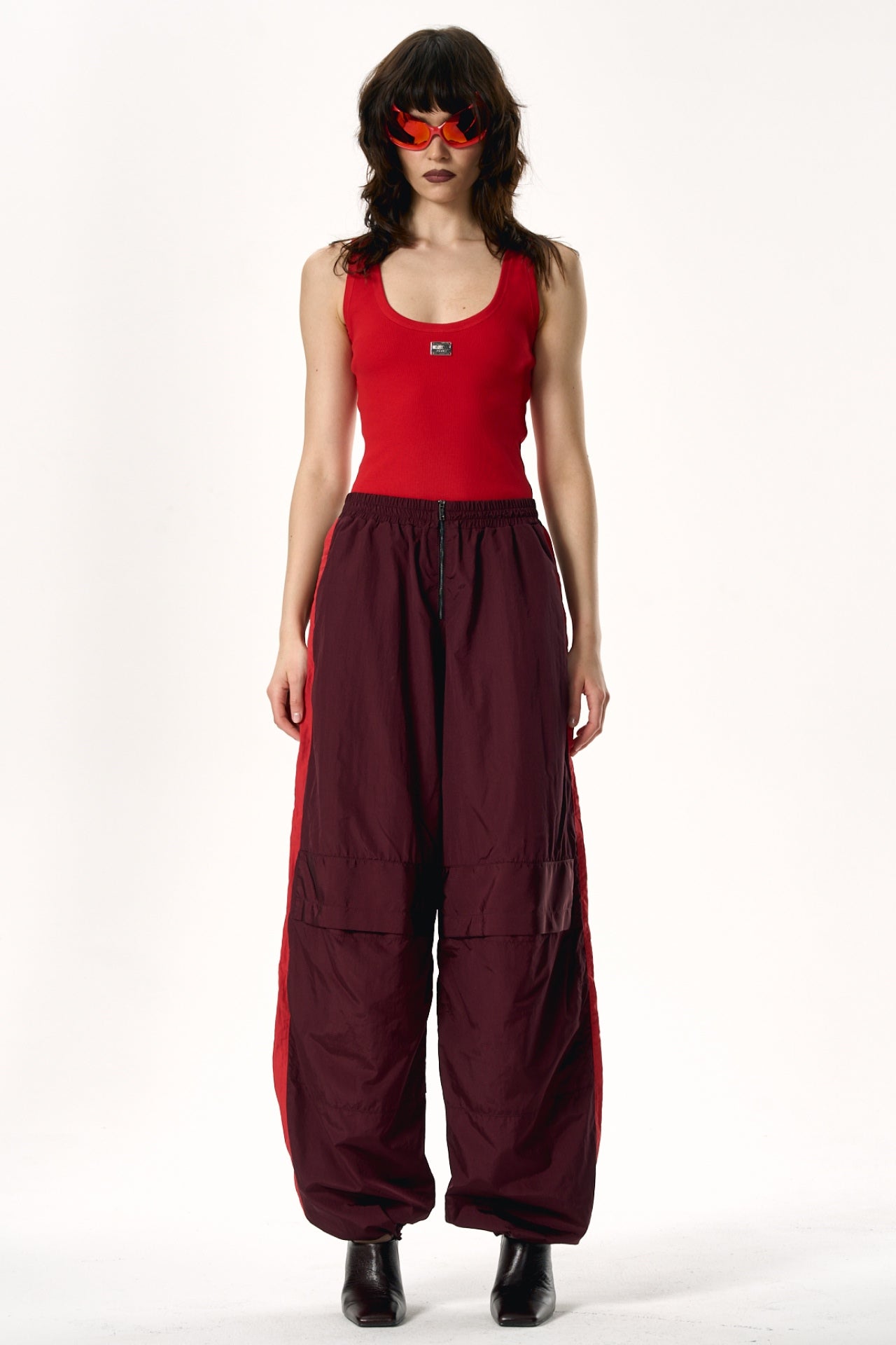 Relaxed-fit trousers with a soft waistband and adjustable drawstring hems. They work well as a set with the zip-up jacket or on their own with basic tops or more form-fitting pieces.