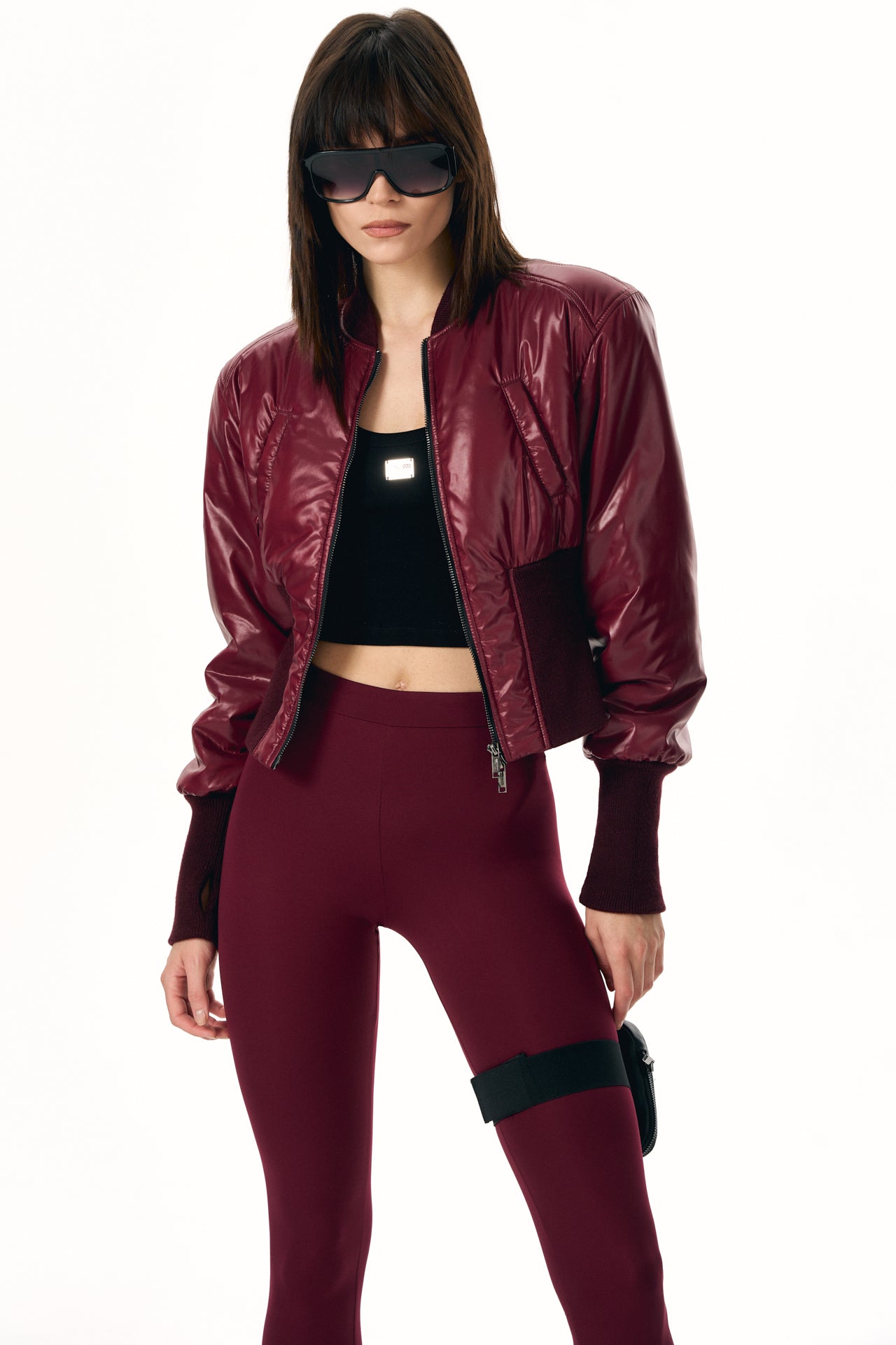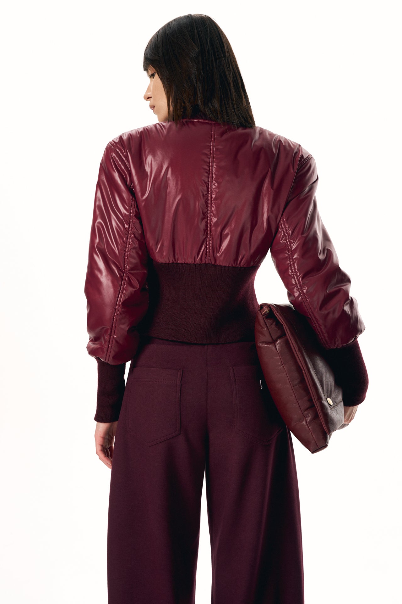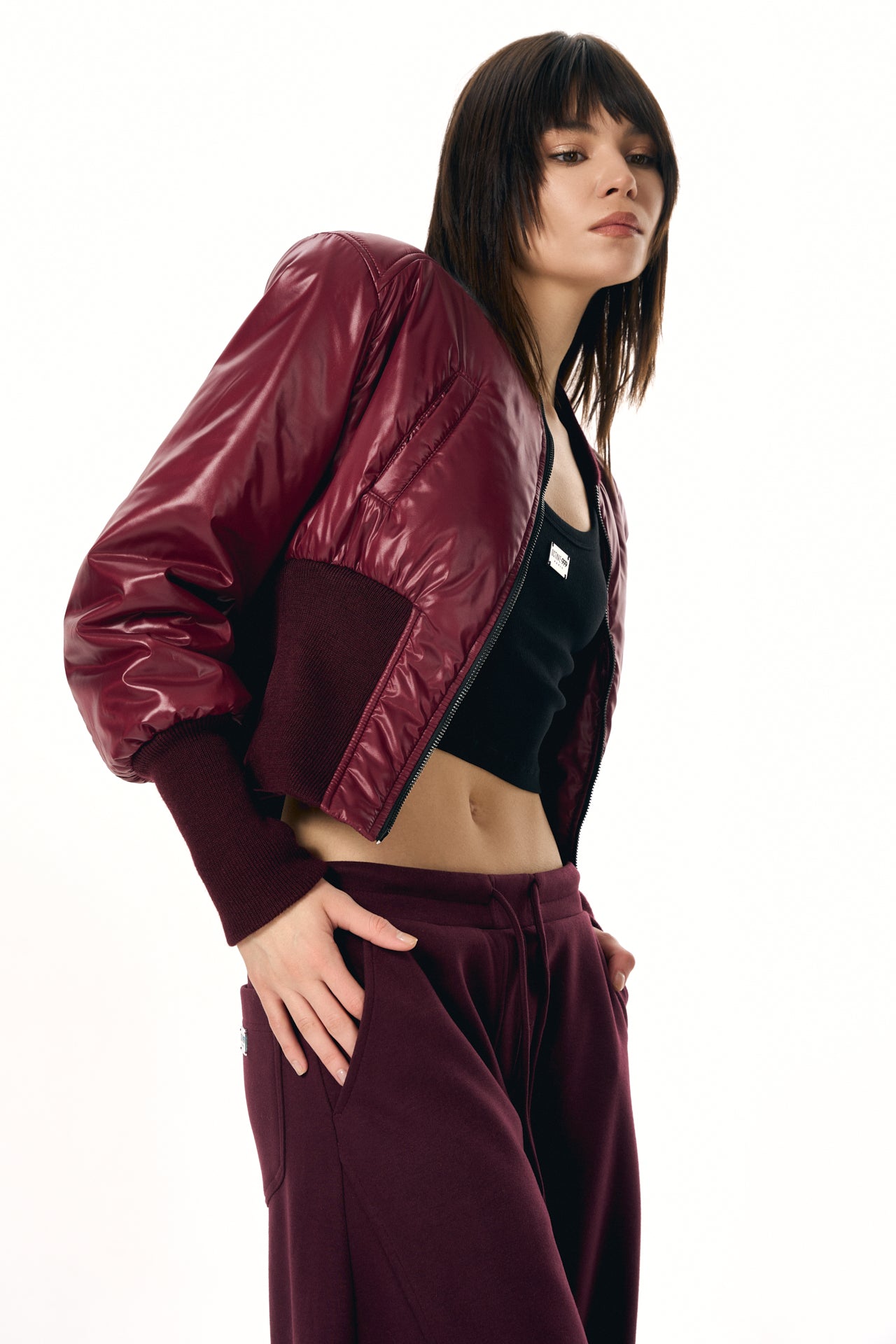 Cropped Fitted Bomber Jacket with a Focus on Silhouette and Fit.