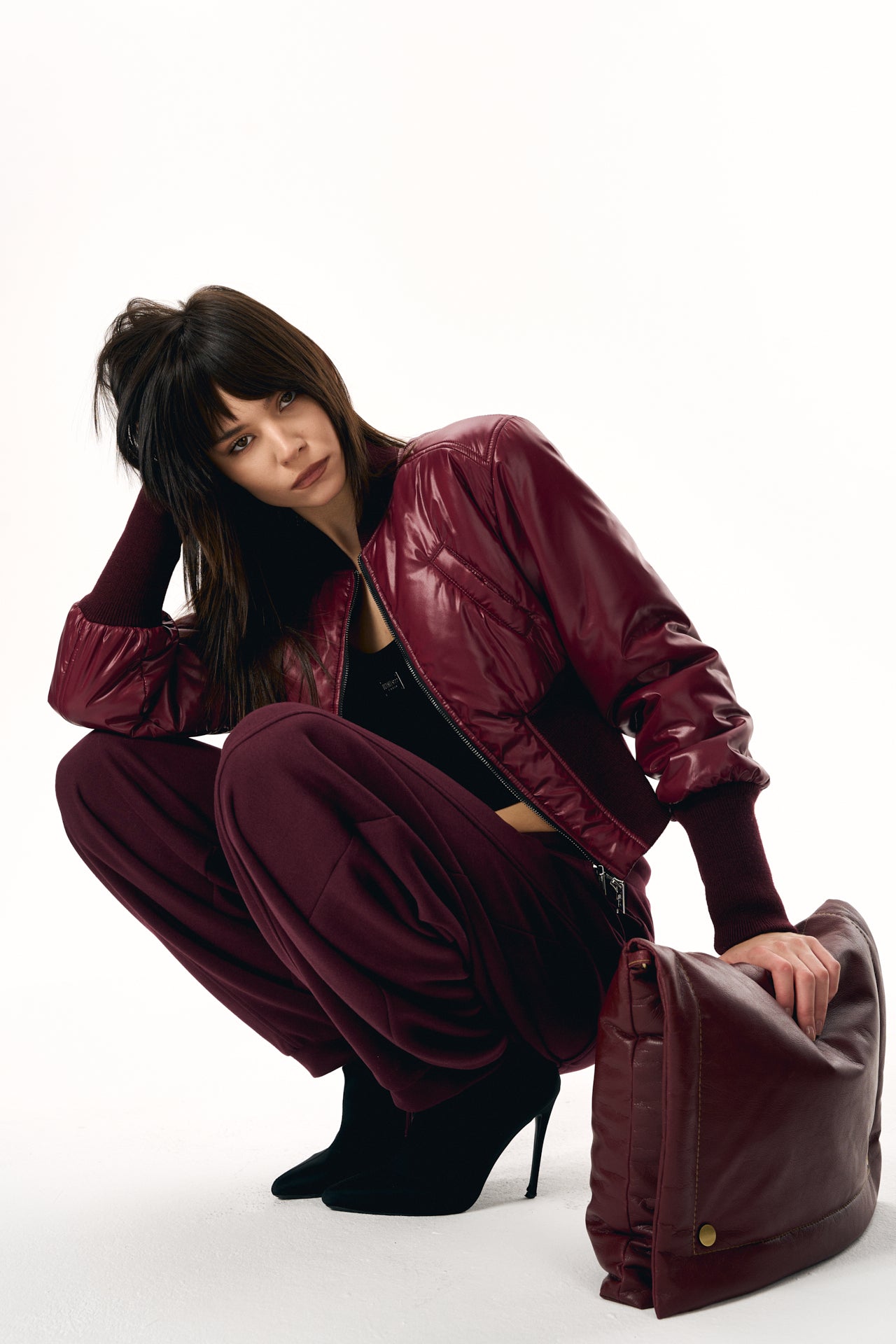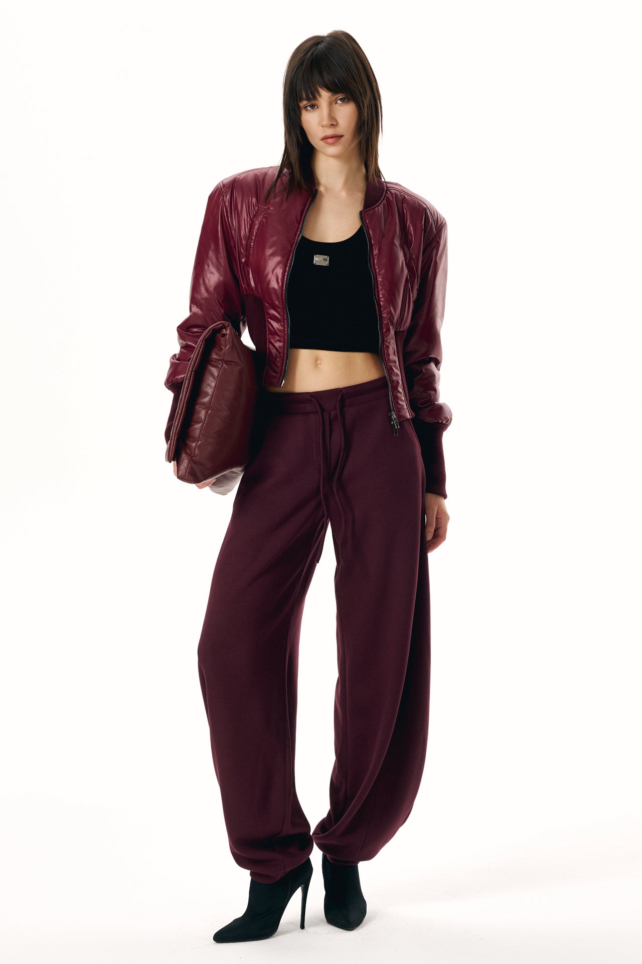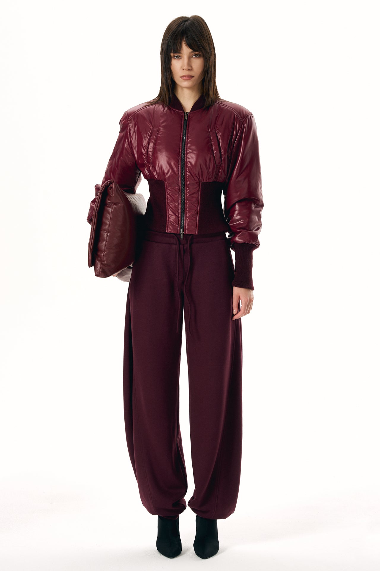 Cropped Fitted Bomber Jacket with a Focus on Silhouette and Fit.