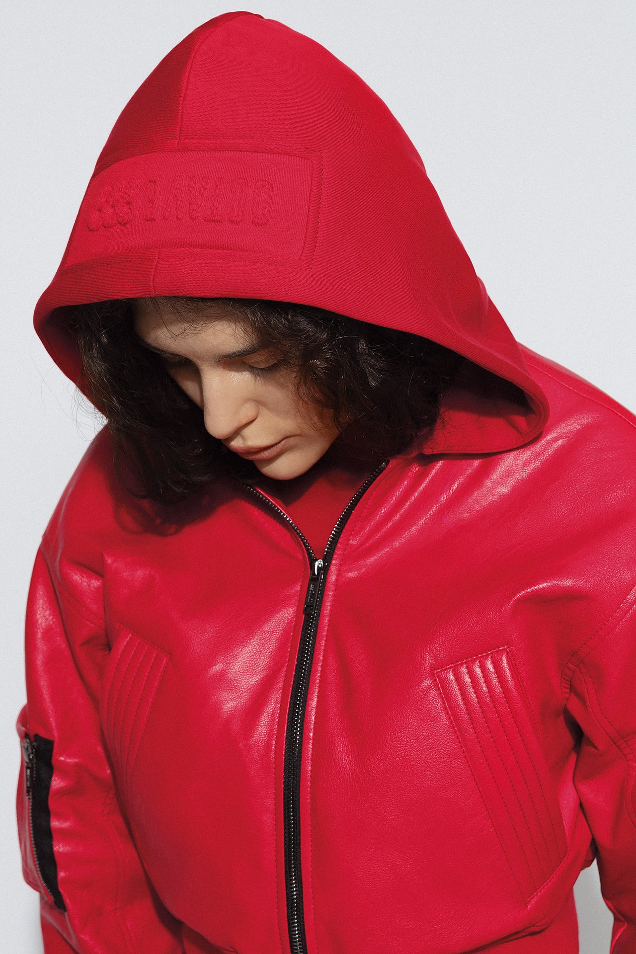Hood lining: Logo debossing on jersey fabric