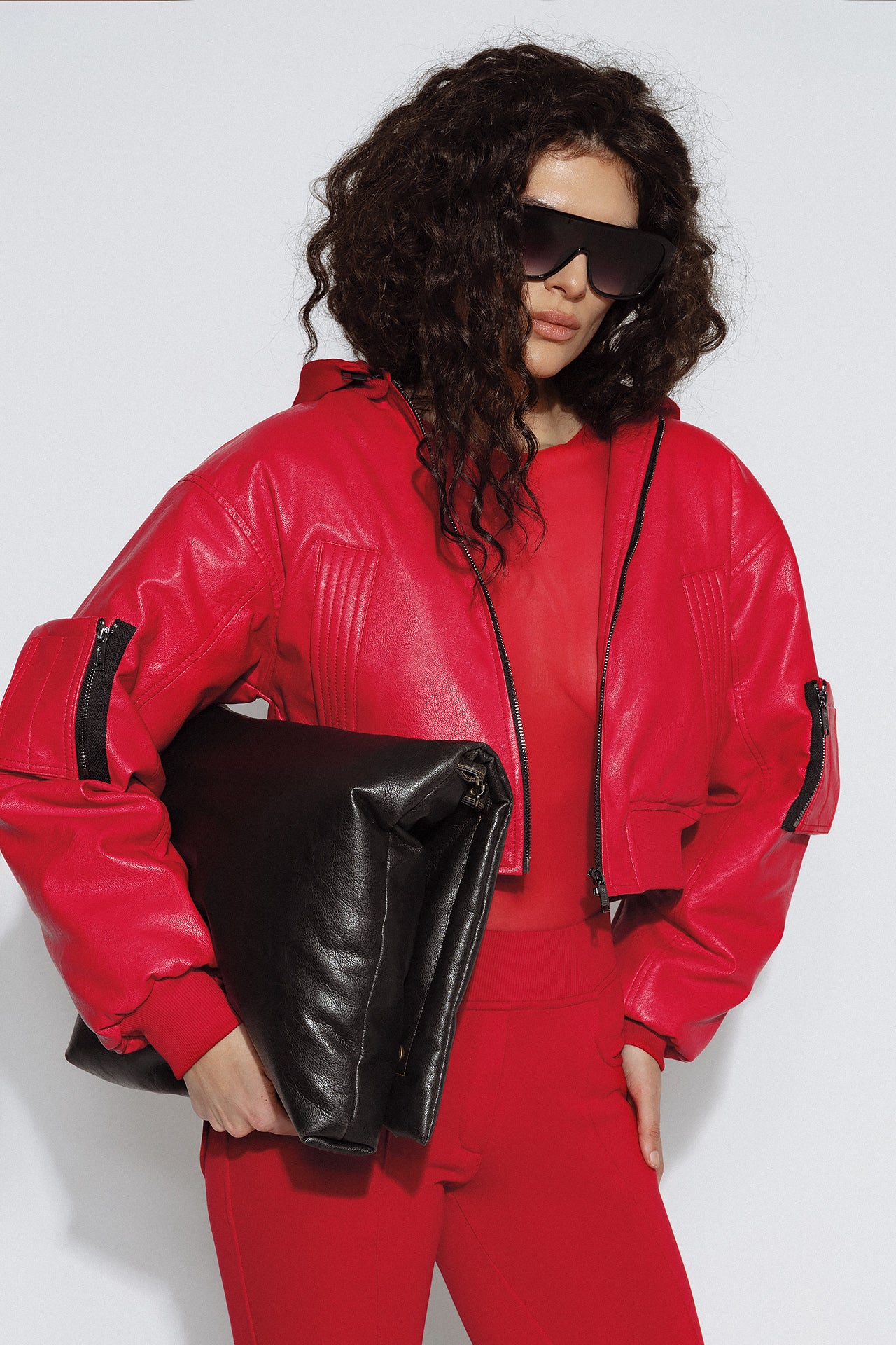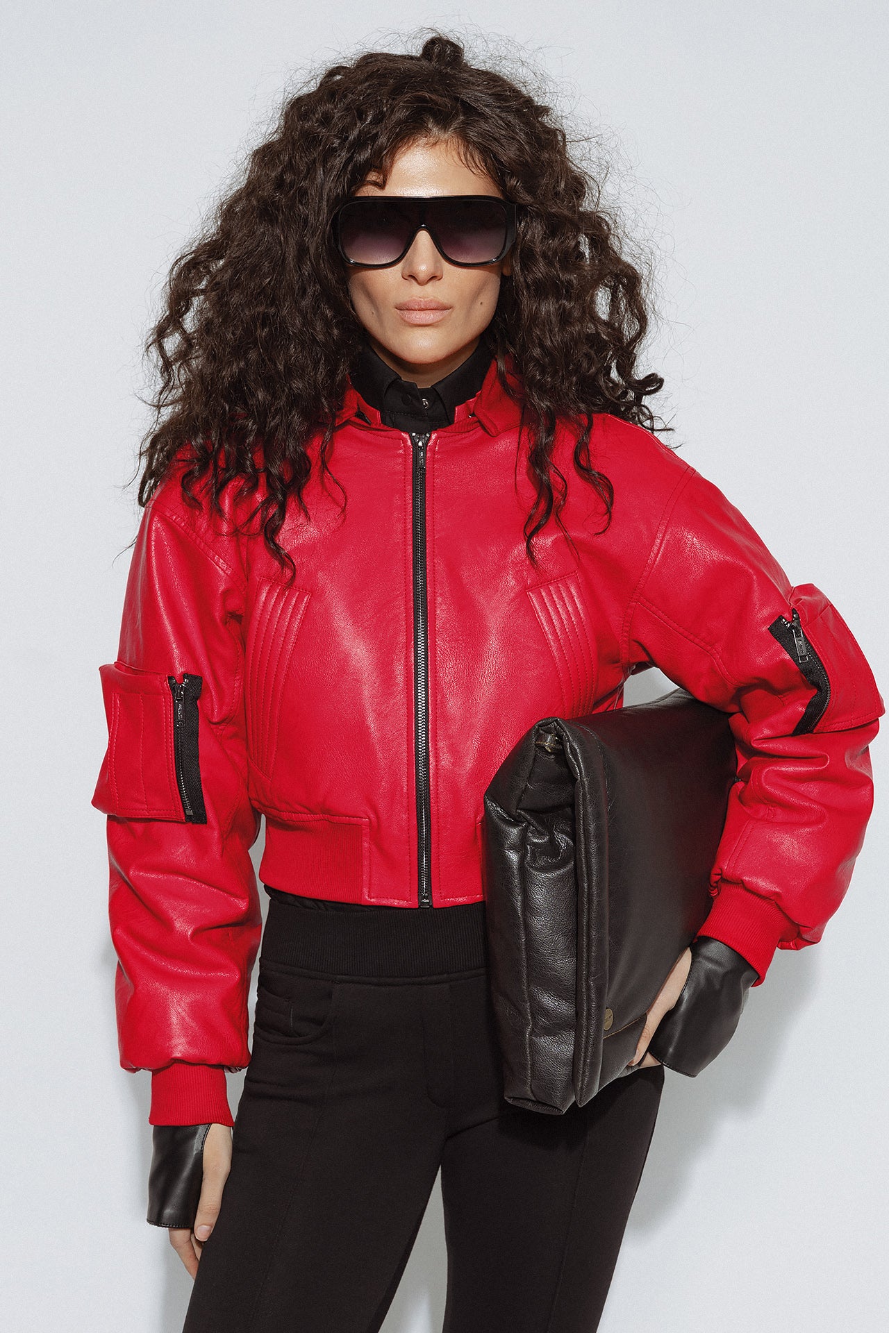 Cropped Bomber Jacket with Architectural Fit and Sculptural Emphasis