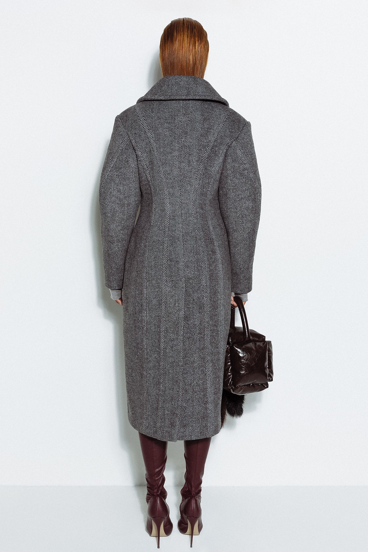• Design: Couture-inspired seam lines create a voluminous cocoon shape and emphasize the waist