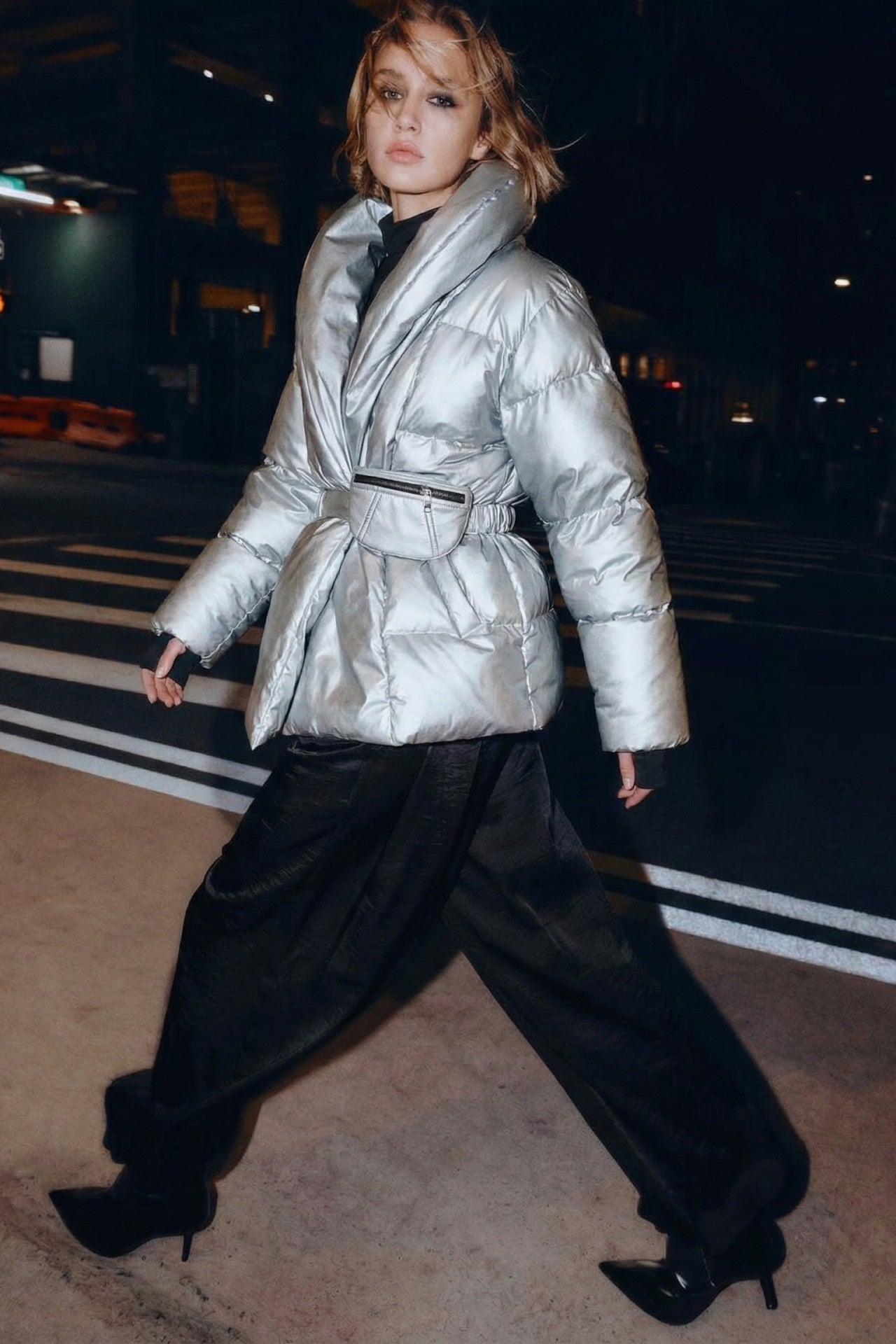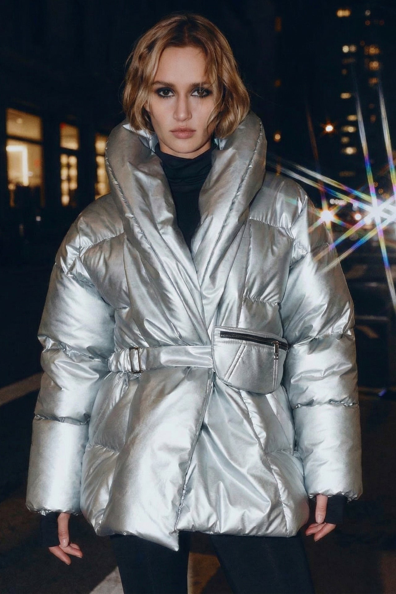 Double-breasted fastening with hidden magnets.