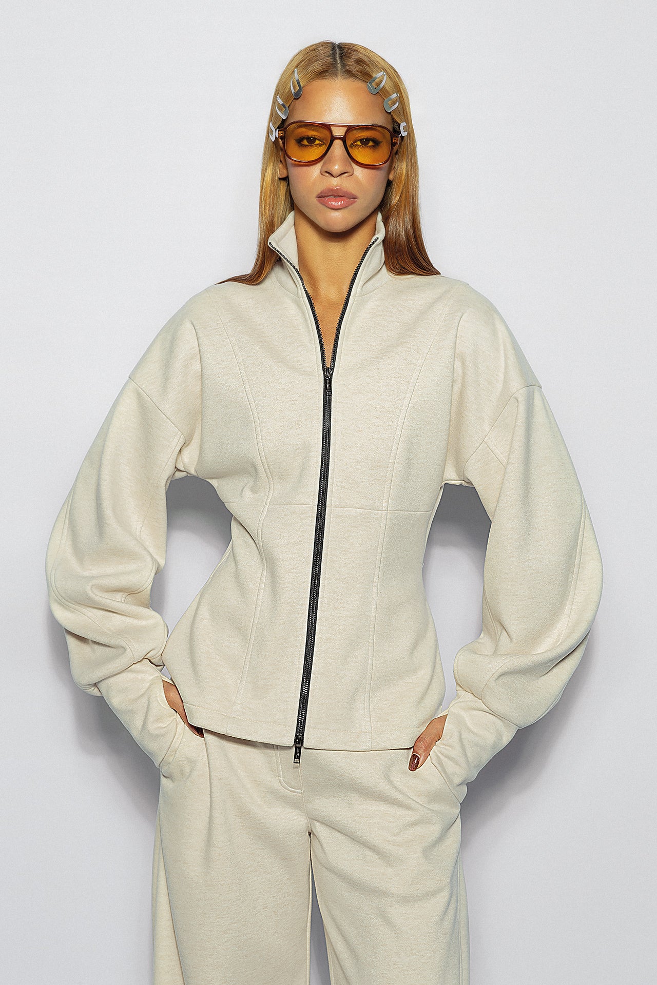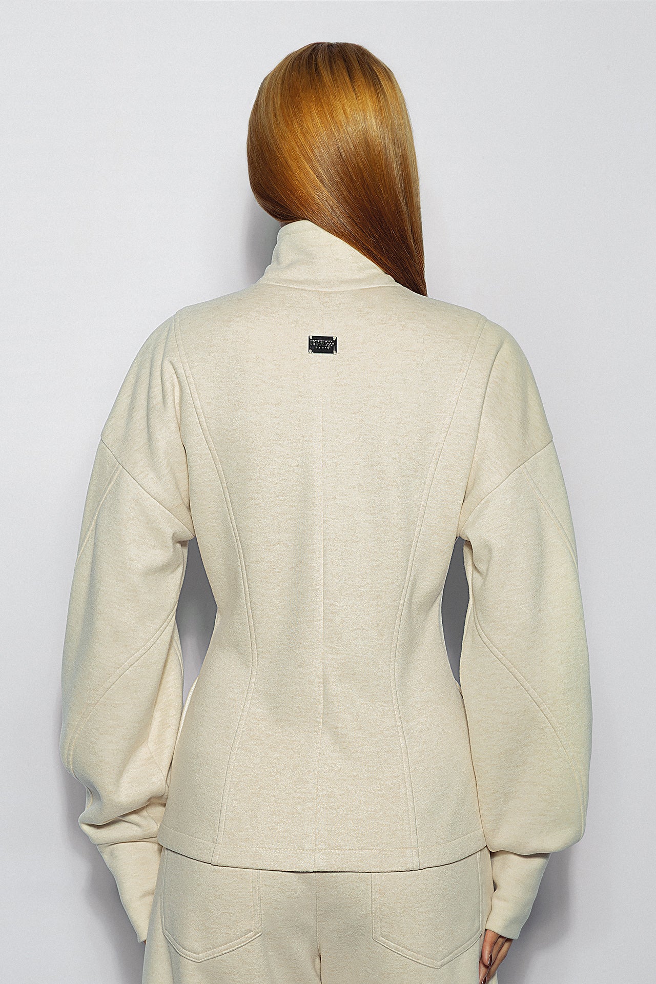 Tactilely comfortable, pliable knit fabric made in Italy (45% wool / 30% viscose / 10% acrylic / 8% nylon / 7% polyester)