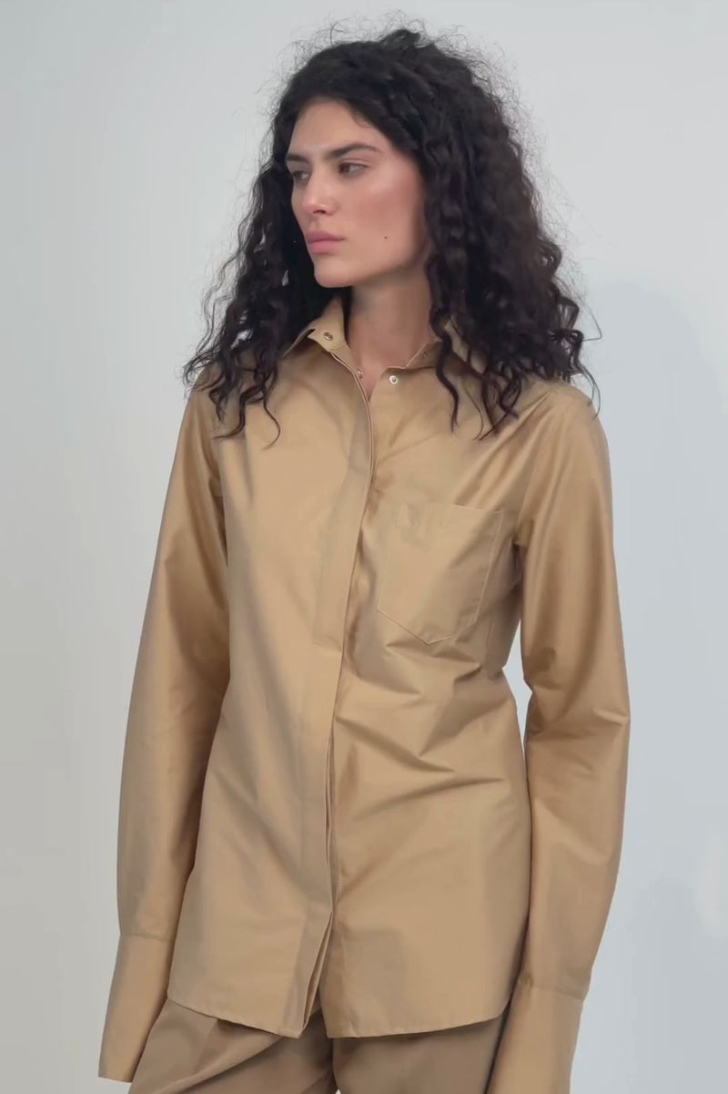 Closure: Hidden placket with snap buttons