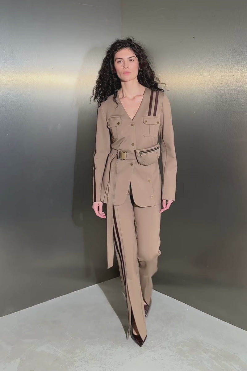 Design features: Bomber coat silhouette, merging classic and contemporary styles
