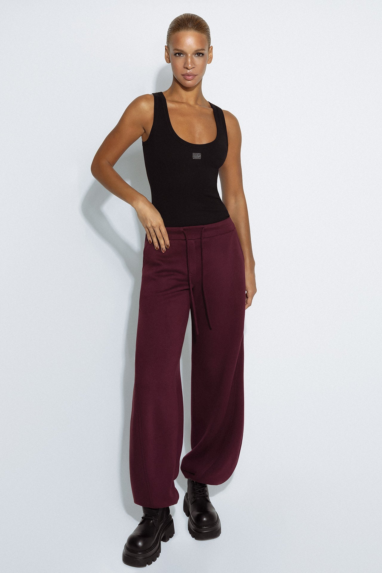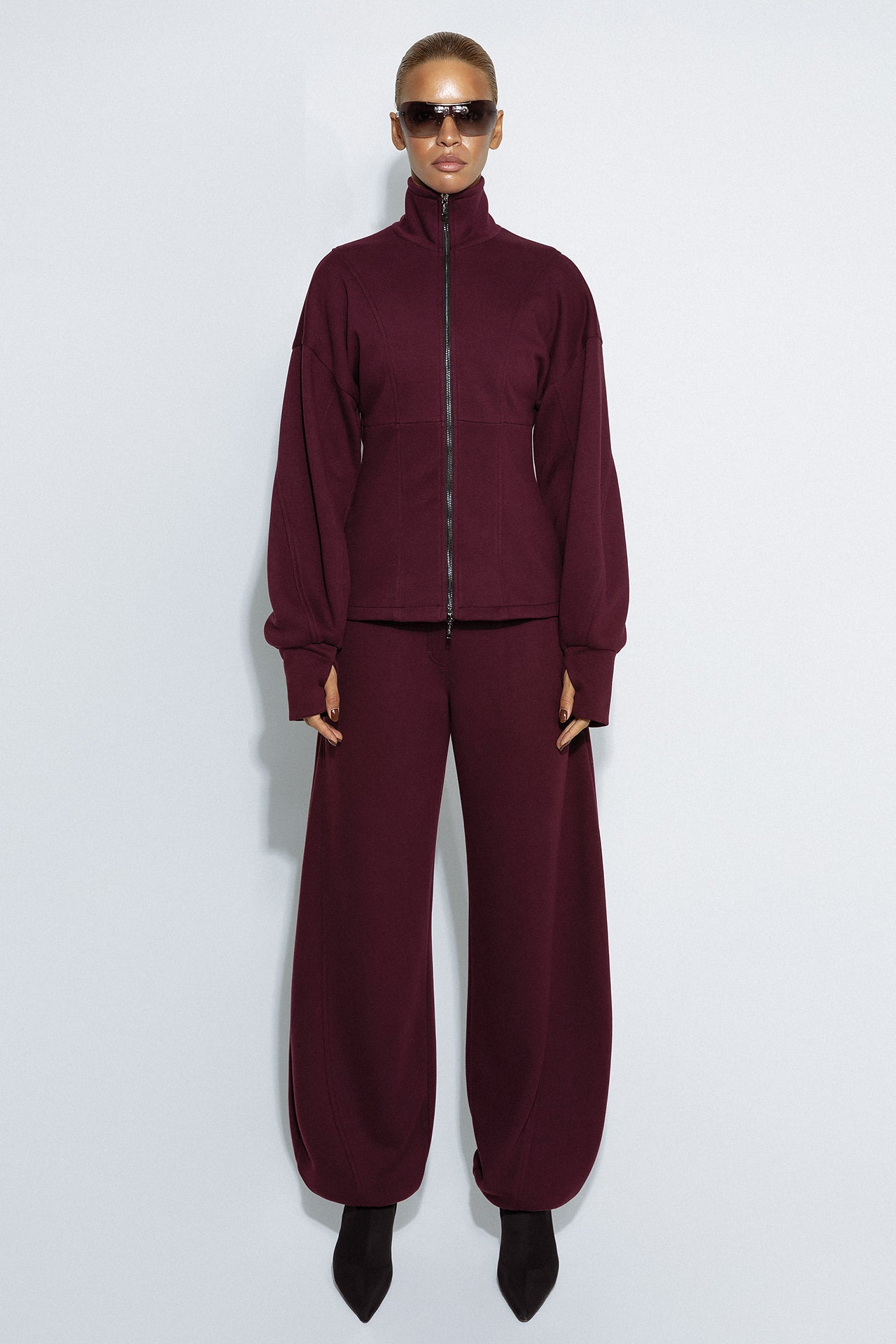 Tactilely comfortable, pliable knit fabric, made in Italy (45% wool / 30% viscose / 10% acrylic / 8% nylon / 7% polyester).